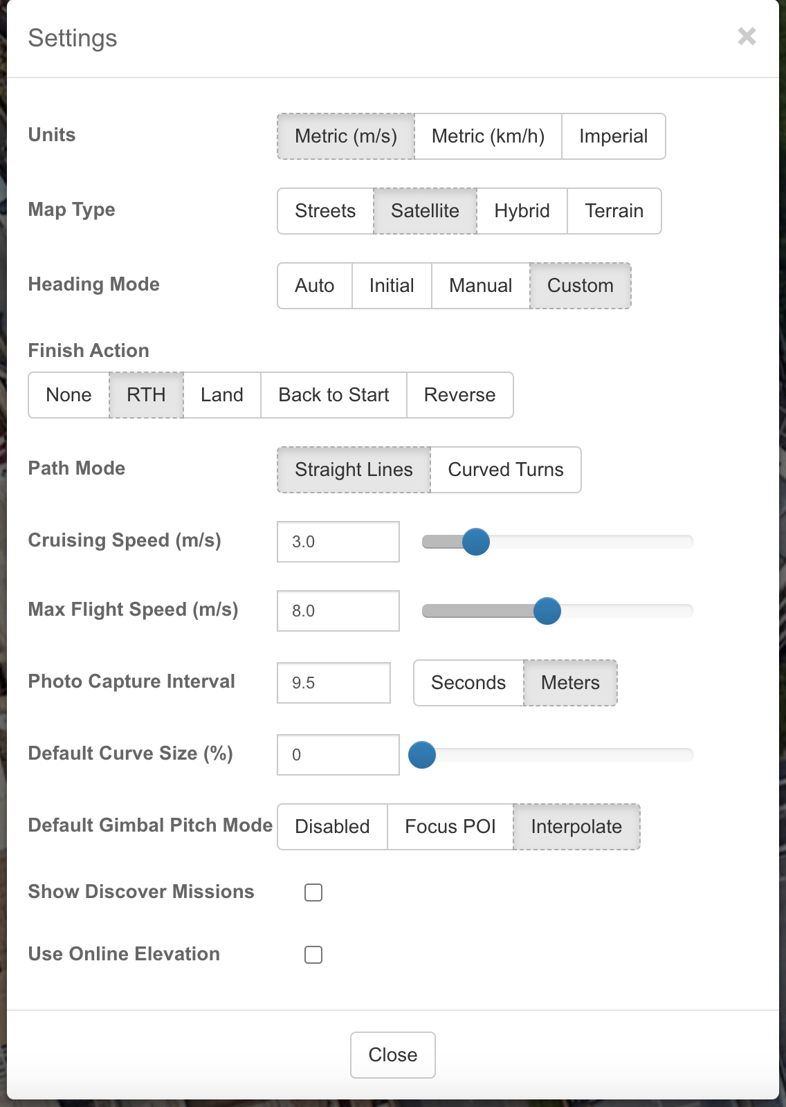 Proceed by launching the Litchi Mission Hub at Litchi Mission Hub and navigate to your intended site for mapping. Adjust the general settings in the Mission Hub as follows: